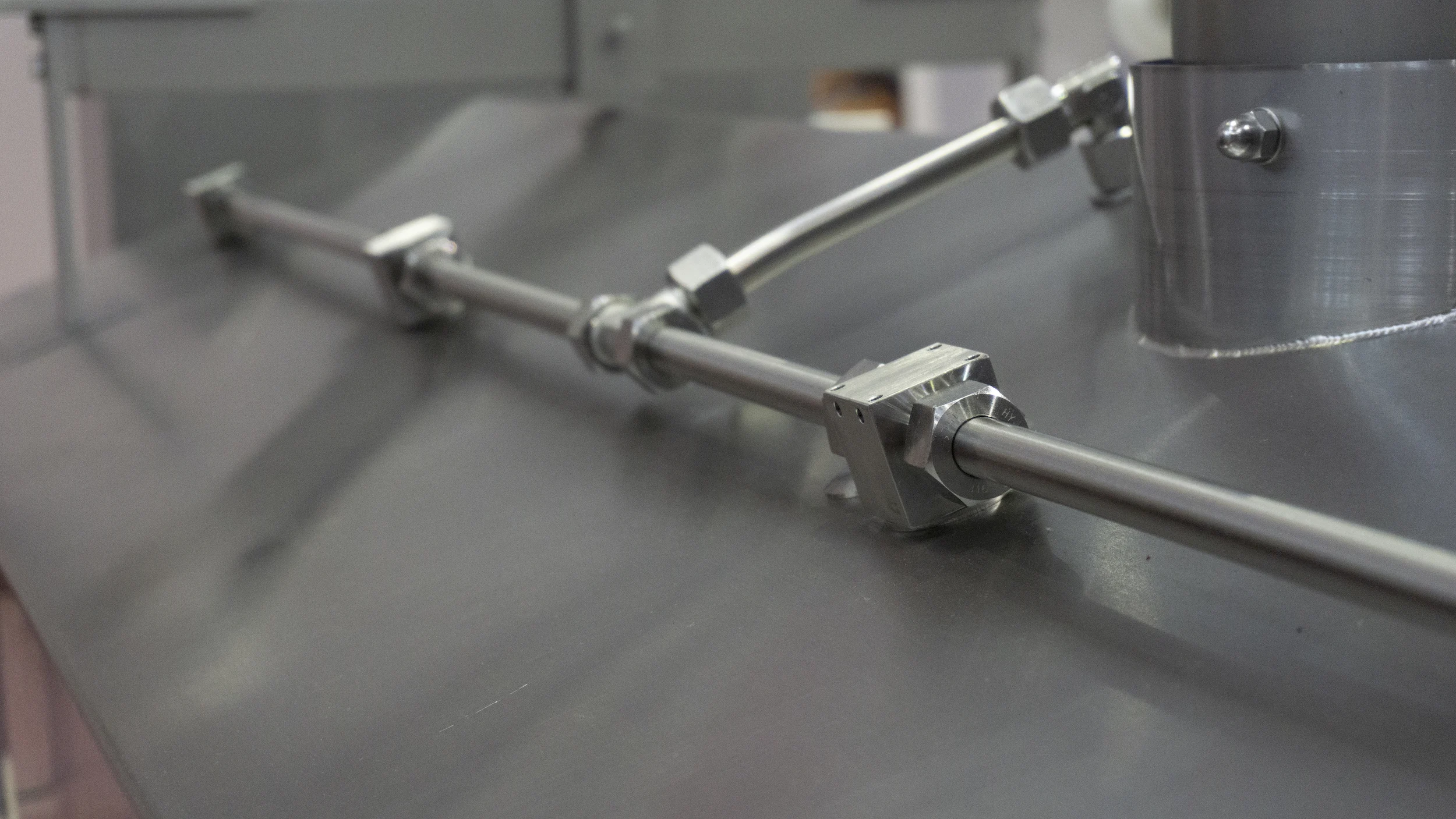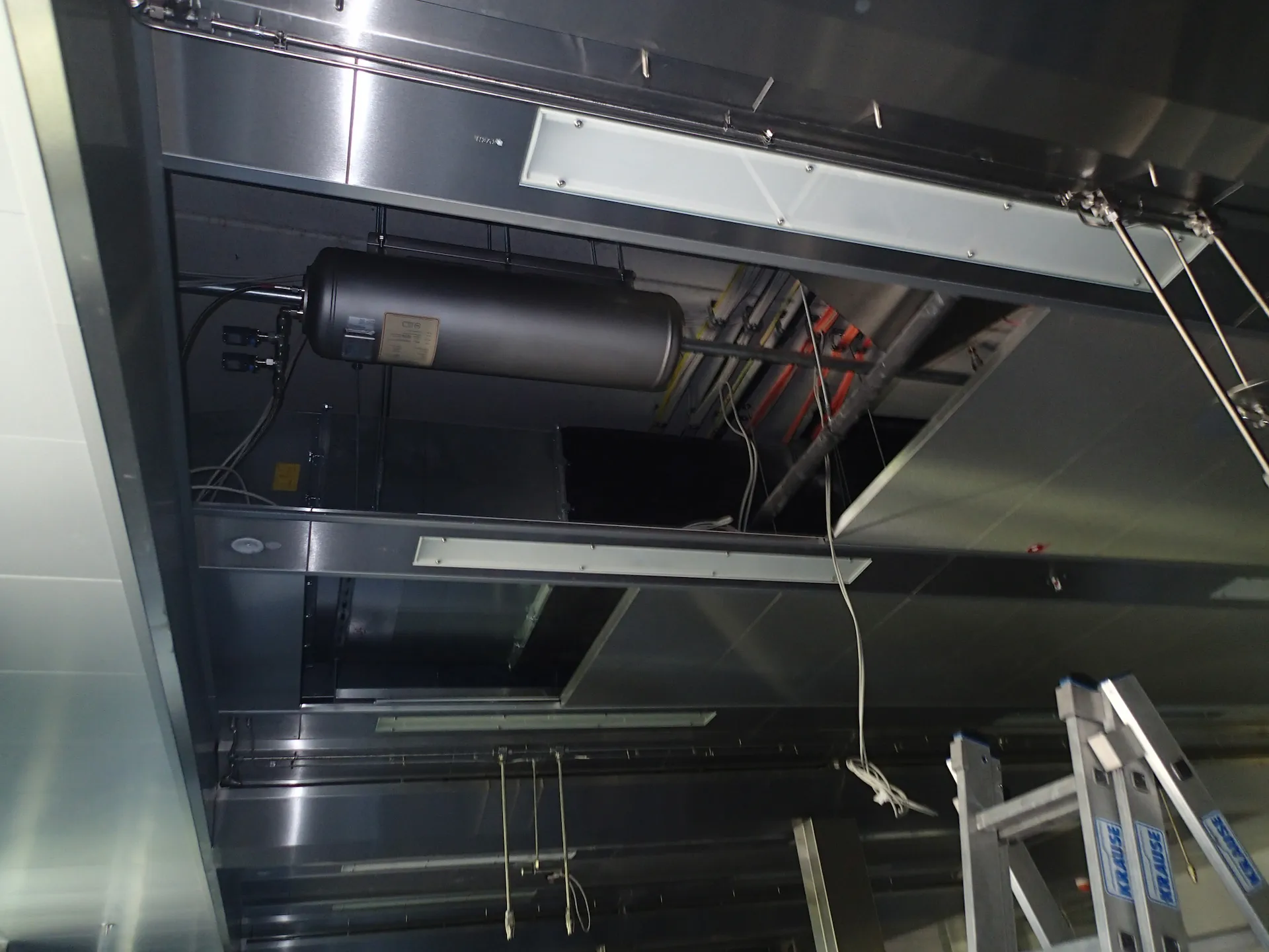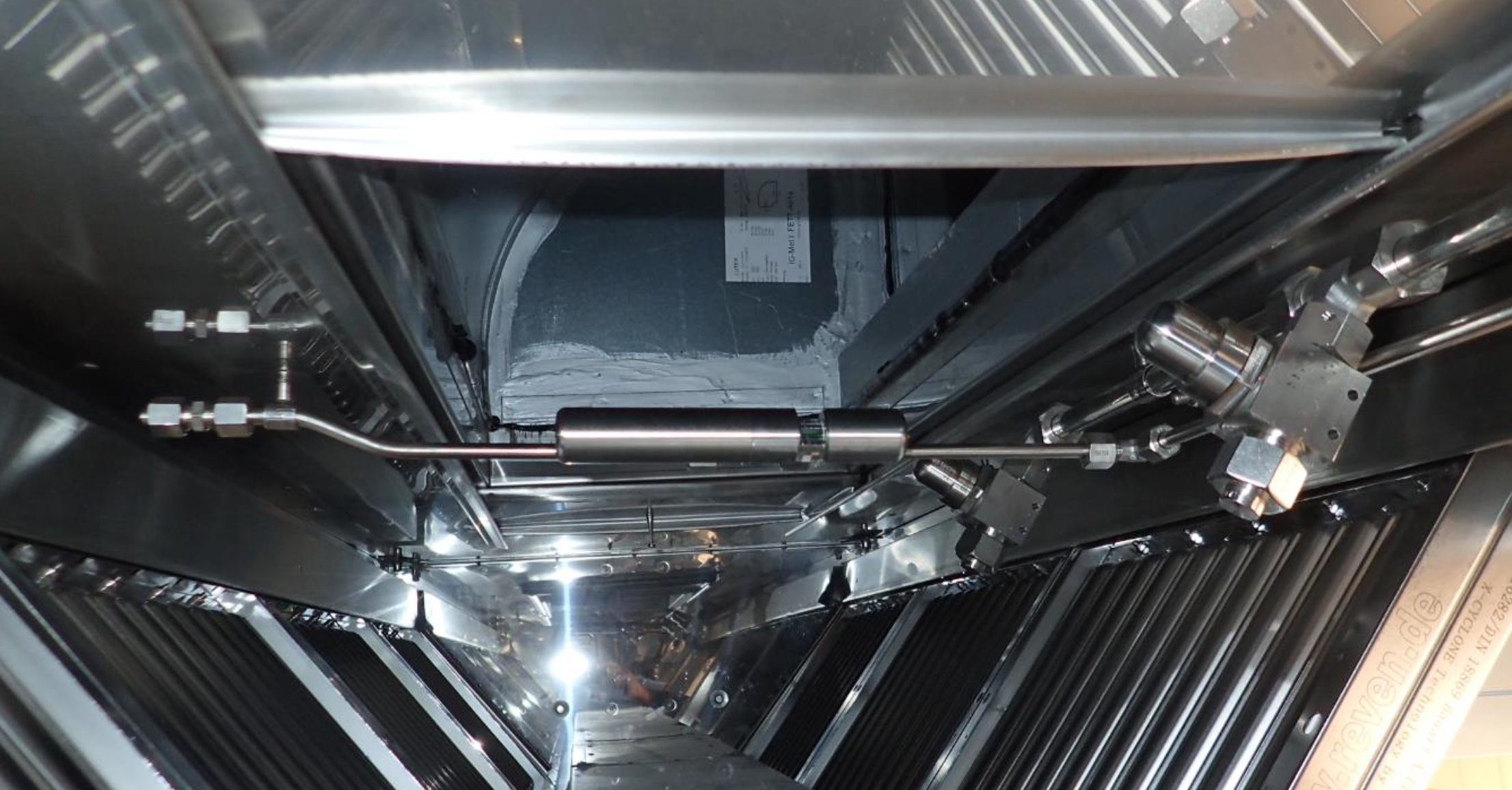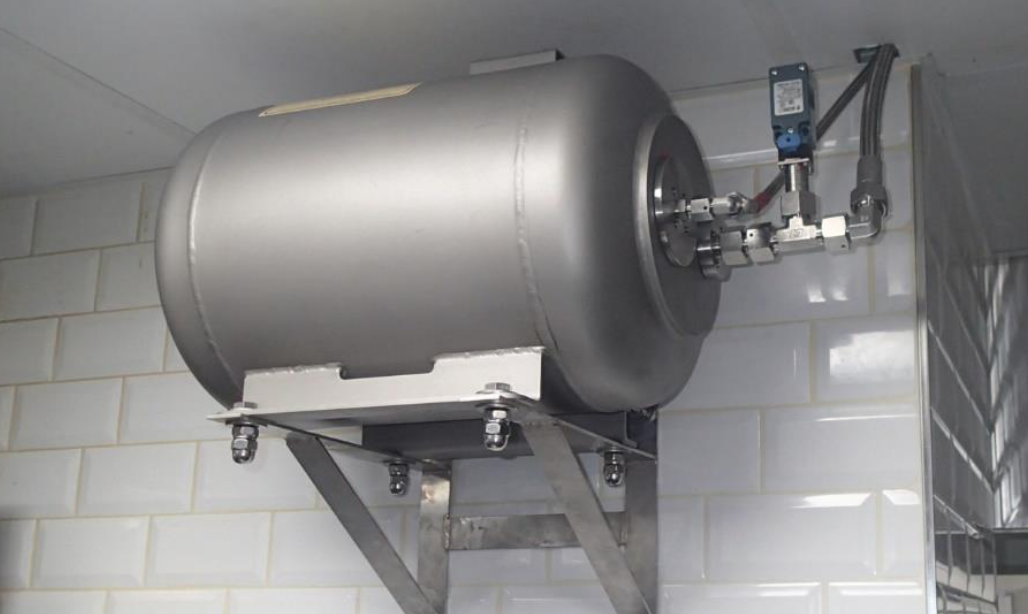 位于顶部区域,如烟机附近等。喷头和探测器会以合理的形式安装好,确保不会对厨房自有布局造成影响。在食品生产加工线为例,通常会置于油脂与热量产生区域的正上方。整个管线系统全部采用不锈钢材质。
